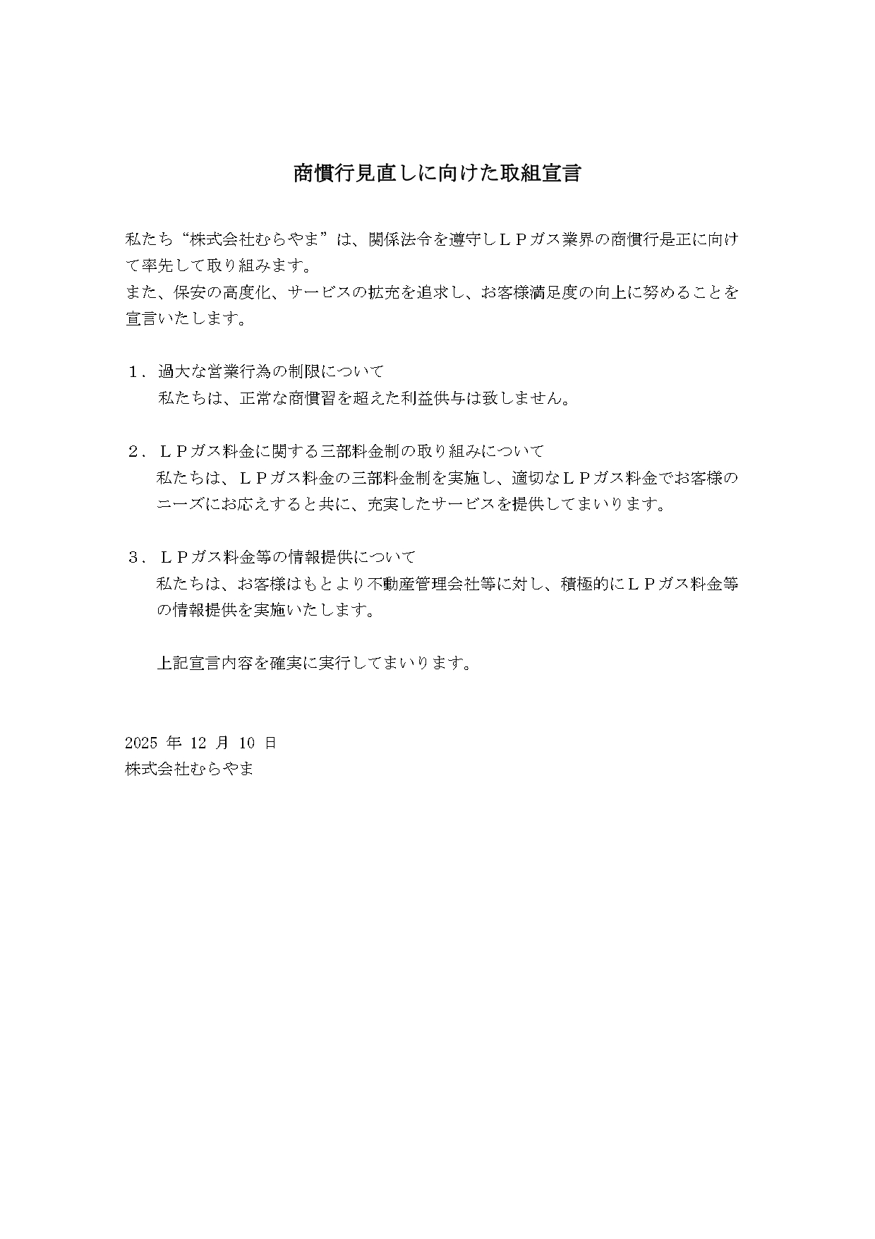 商慣行見直しに向けた取組宣言