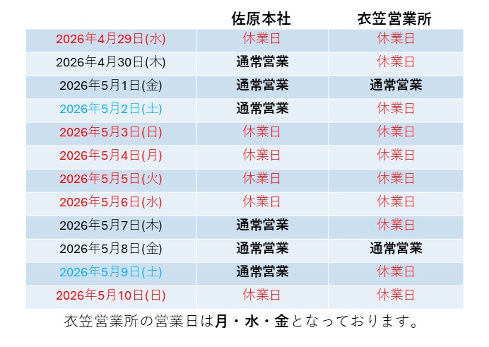 弊社のゴールデンウィーク休業日についてお知らせ致します。